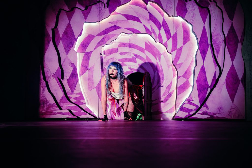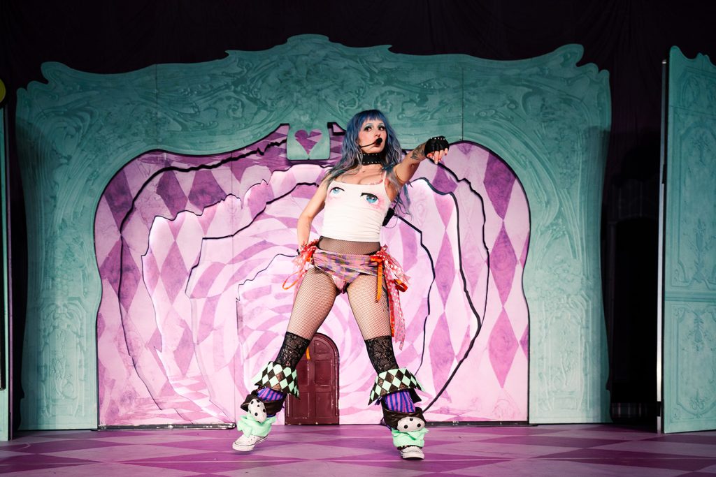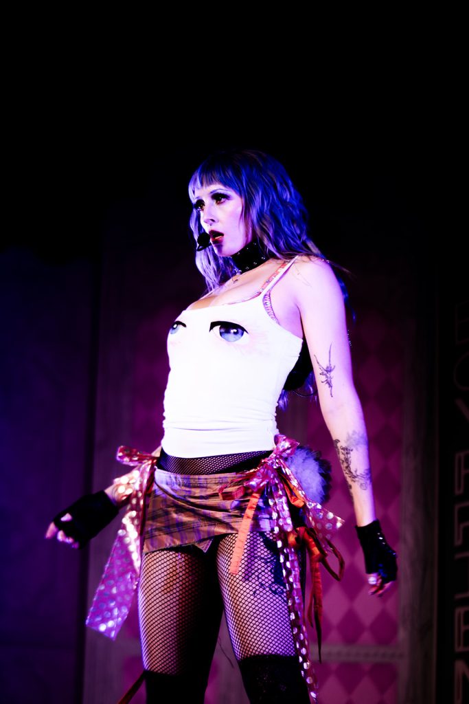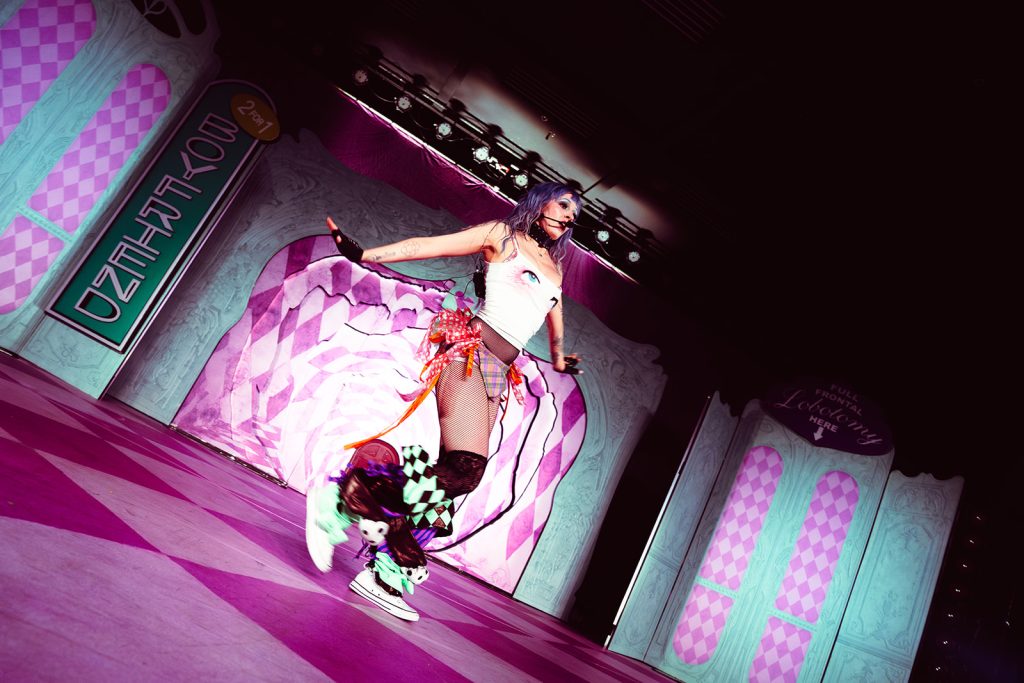 The lights went dark, then slowly began to glow as Ashnikko’s voice echoed through the speakers. She crawled through a small door on stage, one she joked she found “at the bottom of her purse.” From the second she appeared, the room felt less like a venue in Salt Lake City and more like stepping into her world: chaotic, hyper-femme, a little unhinged, and fully in control. Opening with “Sticky Fingers,” she wasted no time setting the tone: high energy, zero apologies, and a crowd ready to match it.