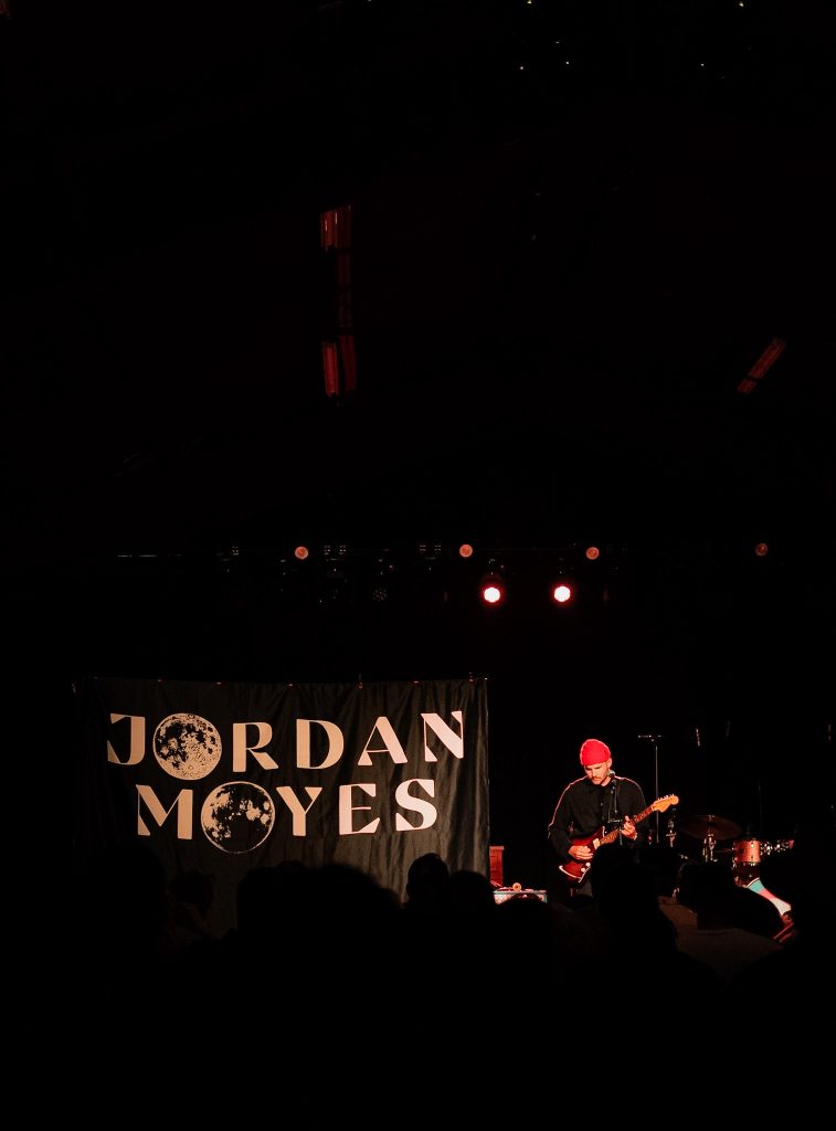 Jordan Moyes quietly took the stage with his guitar and began to play. He opened up with “I Was Young I Was Old,” and was followed by “Hangin’ Around.” Jordan shared that, “Hangin’ Around was the first love song he wrote about his wife. It was a beautiful song and a sweet tribute to his wife and their relationship!