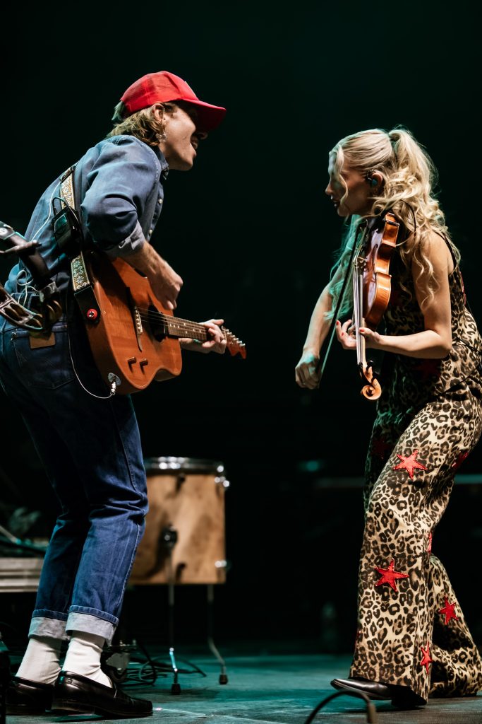 After the first few songs, Meg and Brady introduced themselves and expressed that they were so excited to be home in Utah! They spent some time reminiscing and shared that they initially started out performing at a venue called Velour in Provo, UT. Then, they booked their first tour that consisted of two backyard shows and one legitimate venue in Seattle. At that show in Seattle, three people showed up – one of the three was a friend, and the other two were venue workers. Needless to say, the fact that they were now playing on stage at a sold-out show at the Delta Center in their home state was a pretty amazing feeling!