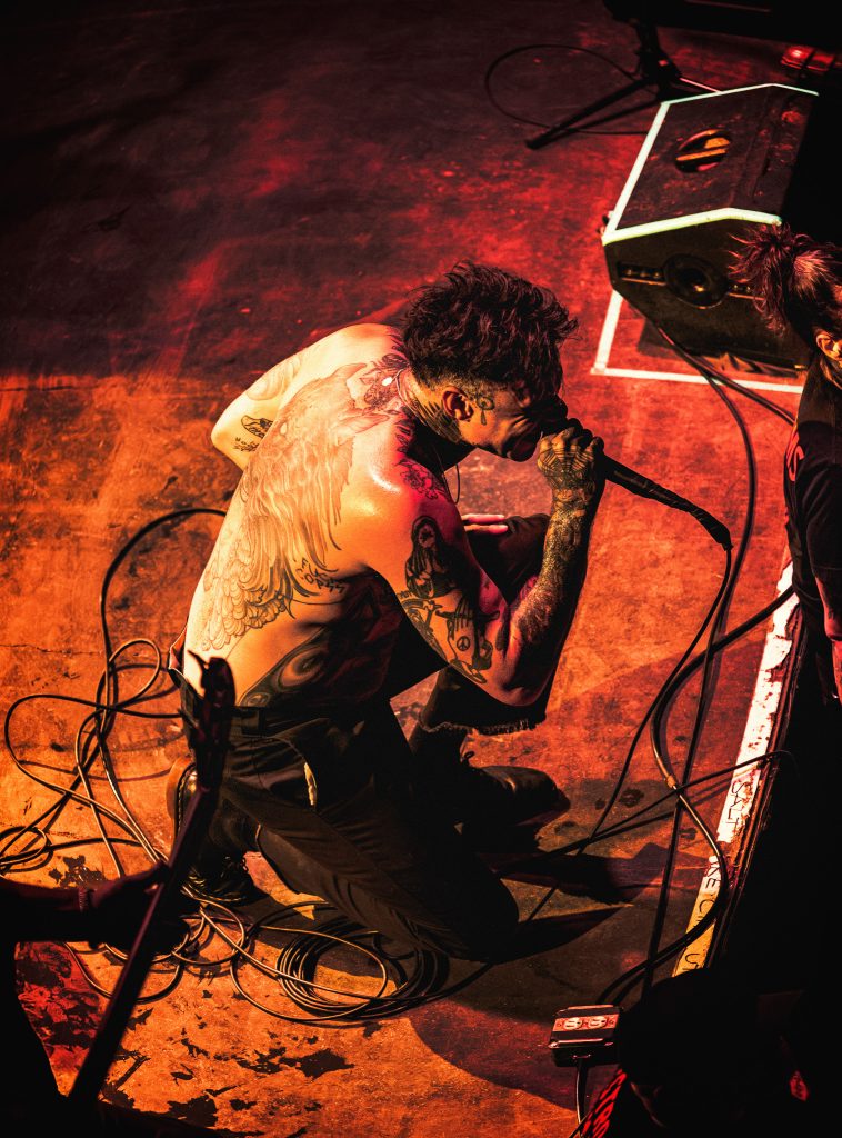 I rocked up to the venue, one of my favorites in Salt Lake, to find it completely packed! Everyone was beaming with energy and chatting amongst themselves about what they were most looking forward to from the show! The merch line was so long, wrapped around the hallway, which is a testament to the devoted fanbase. I love to see this, no matter who the artist is! The artists opening the evening were Creeper and Letlive! I had very little idea what to expect from this lineup, but I was stoked to hear something new and watch a hardcore emo performance, as I don’t get to do that very often!