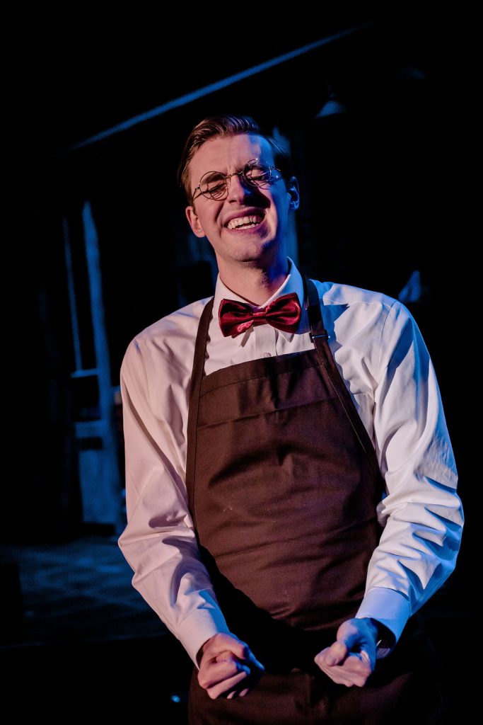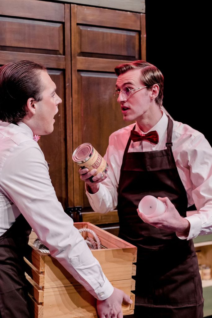 Casting standouts include Ben Dunford-Cable as Cornelius Hackl and Jake Shelley as Barnaby Tucker. These are characters that have been cast many times over. So to bring a fresh and fun take on these roles says a lot about both the casting of these actors and their portrayal of the parts. Shelley stood out as a particular highlight and crowd favorite. It was good to see Cable in another production after seeing him in one of my favorite productions that I’ve seen on a community theater stage, Sentinel Theater’s “Bright Star.”