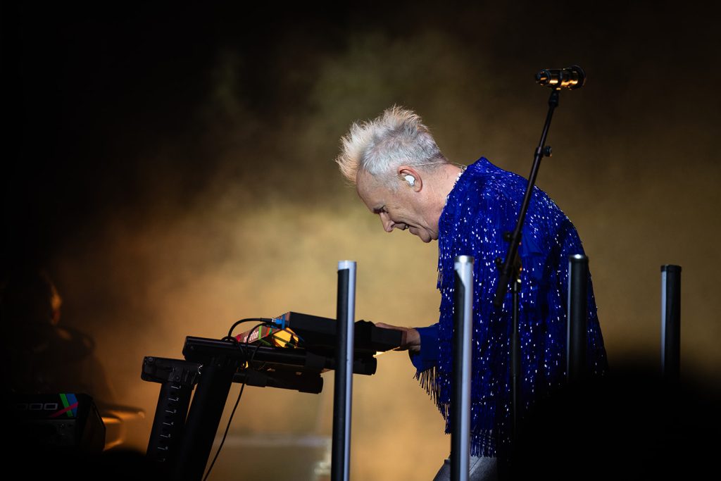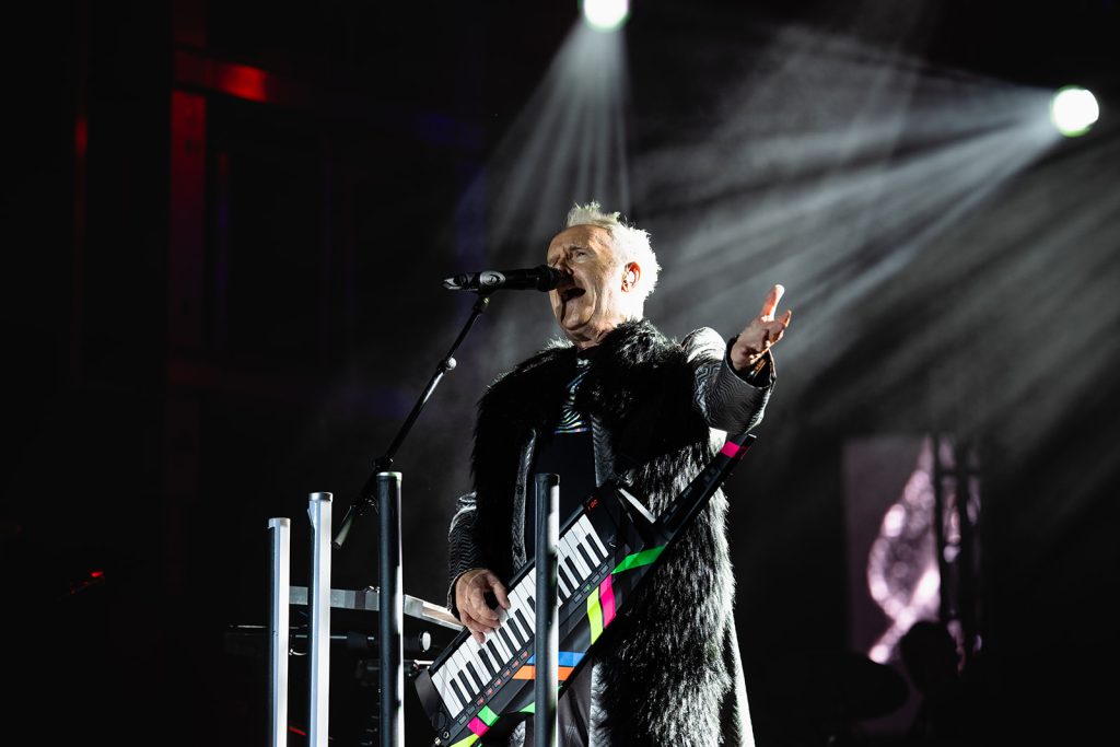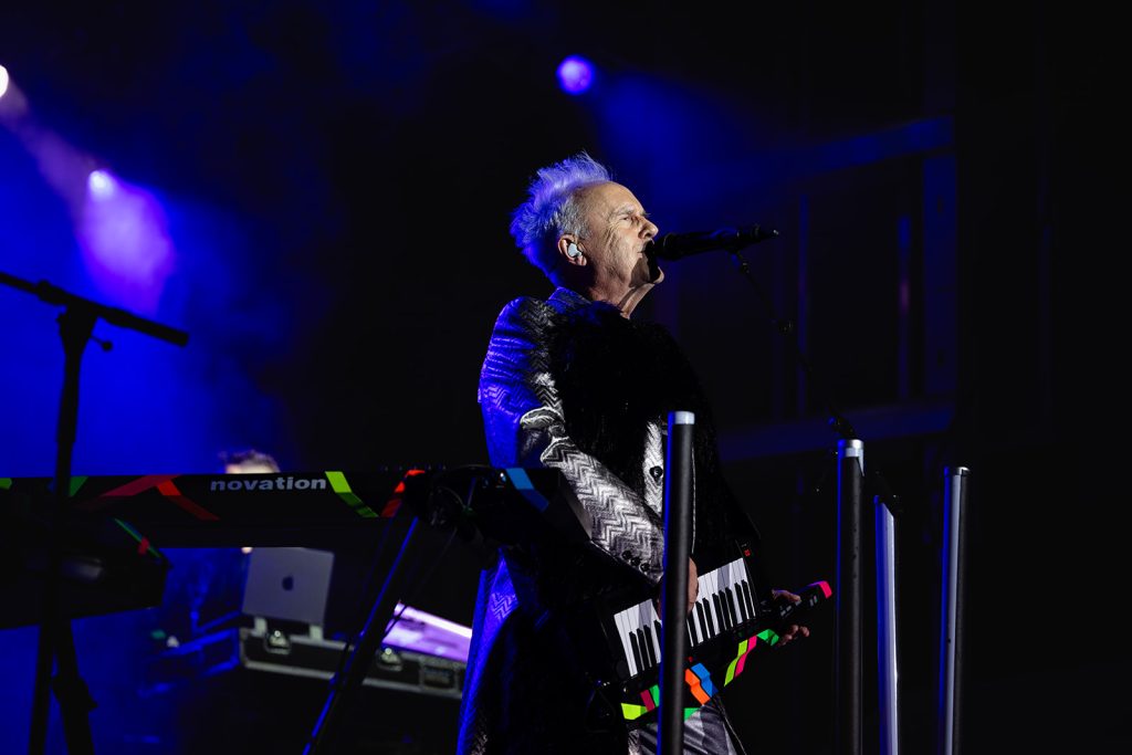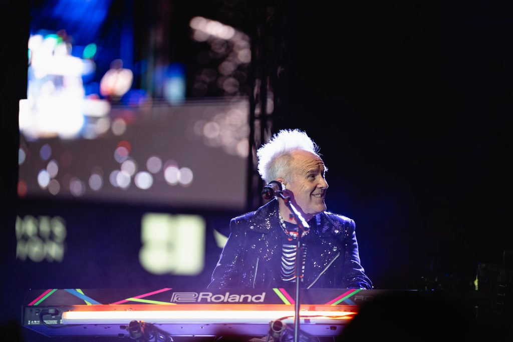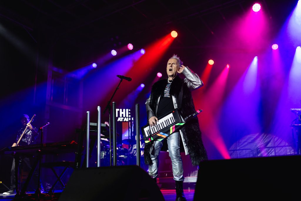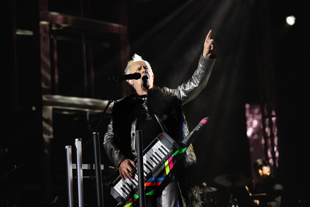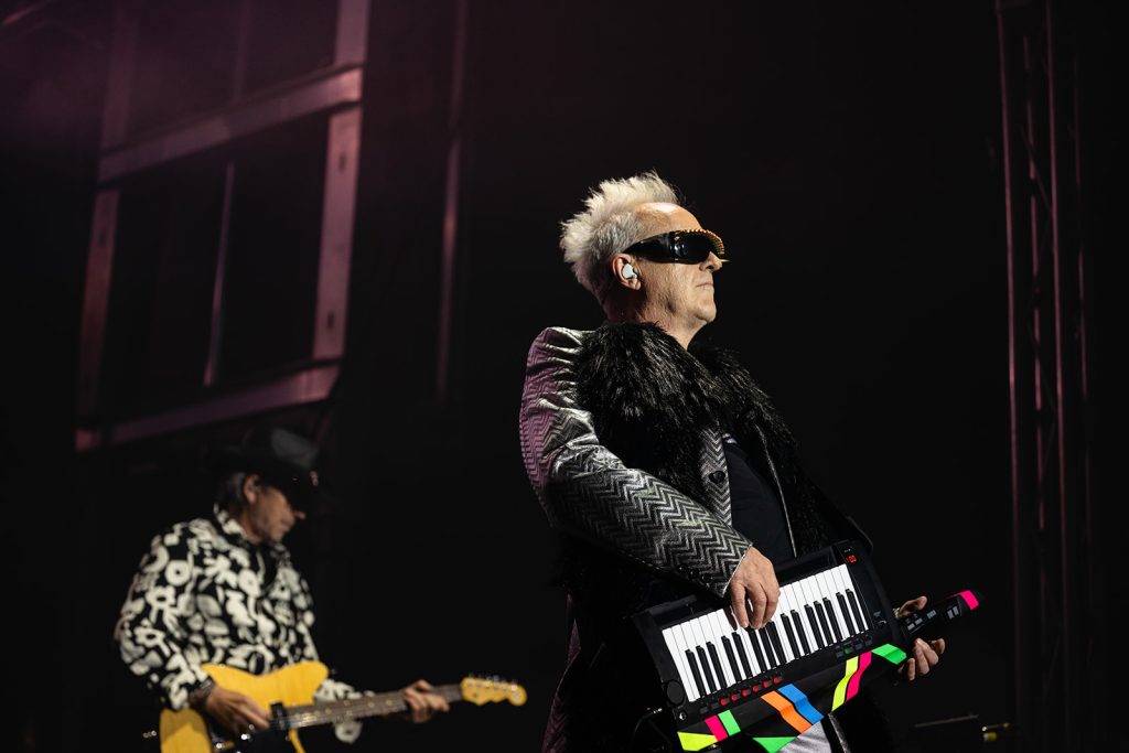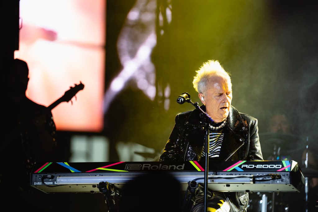 The sun had fully set by the time Howard Jones walked along the outfield and onto the stage. The rise in energy was instant. Howard never disappoints in the wardrobe department. For this show, he took the stage with dark sunglasses, shooting lasers out into the crowd. His signature keytar strapped to him while he donned an impressive black and silver zig-zag striped blazer. Opening with “Pearl in the Shell,” the audience was locked in on Howard and his full backup band.