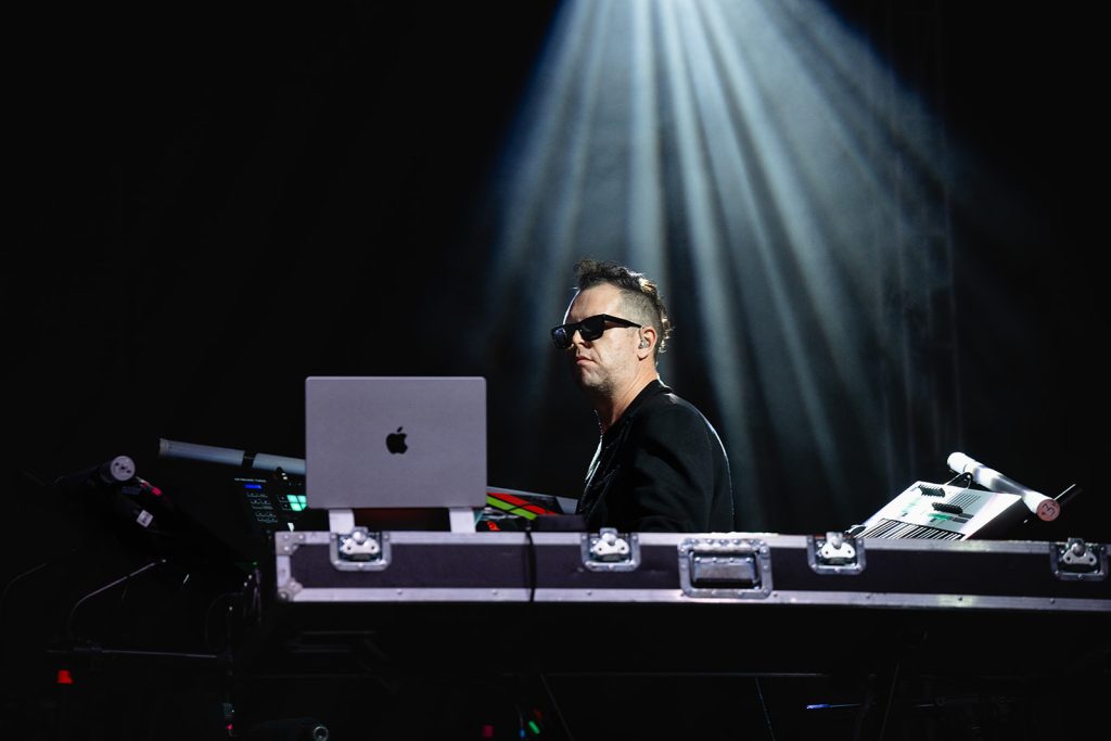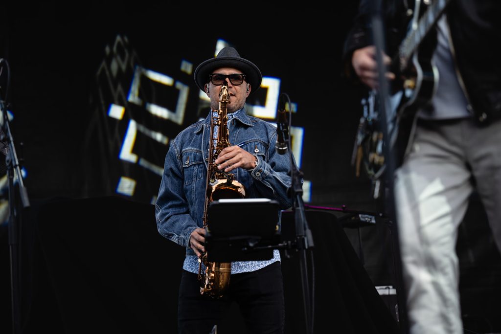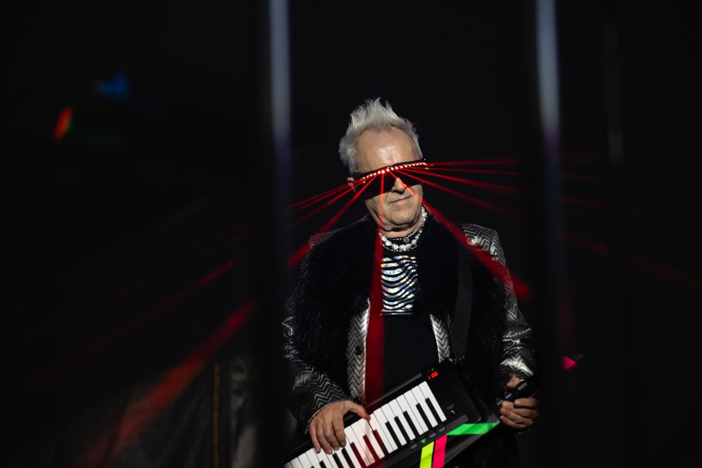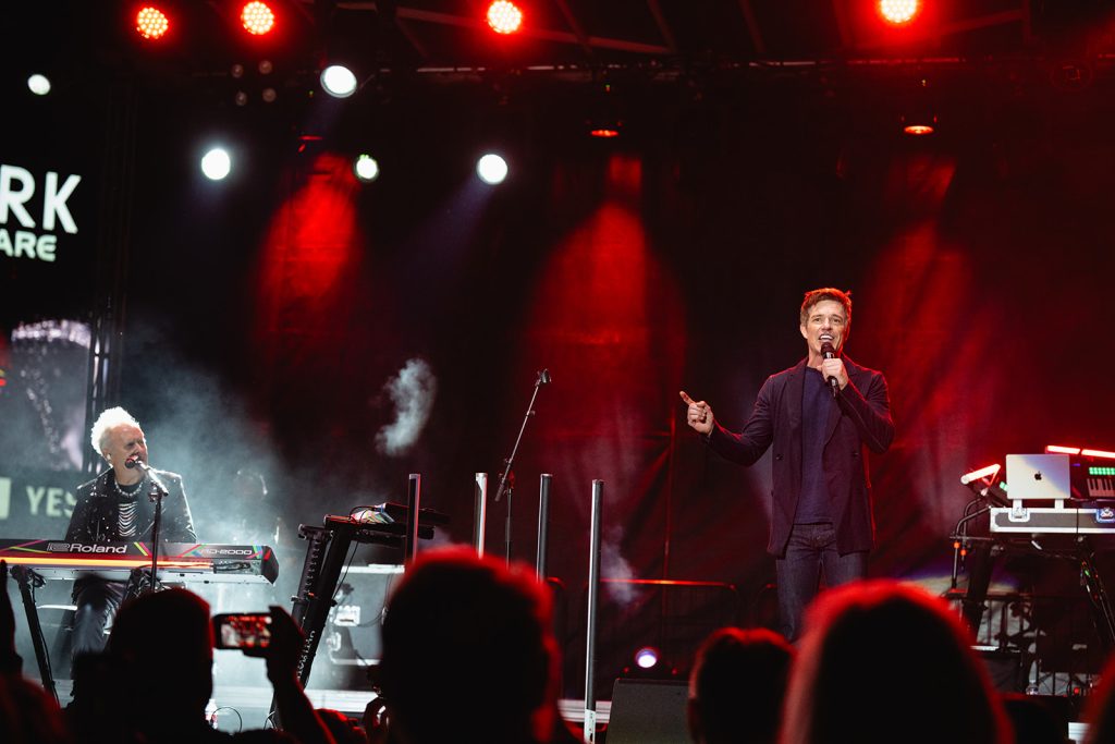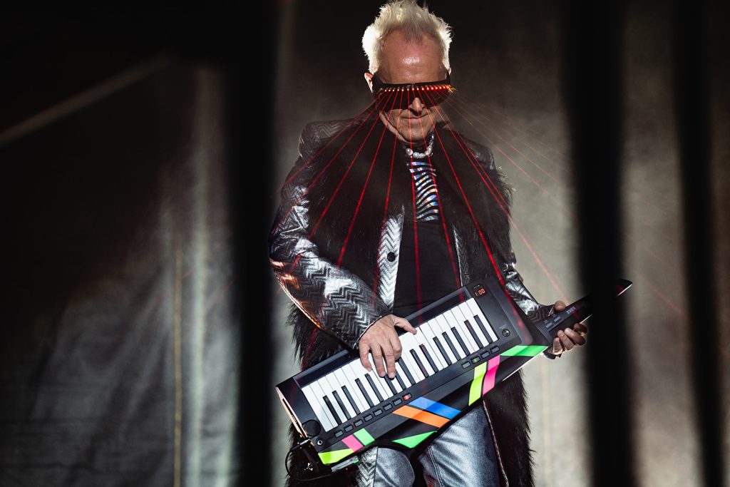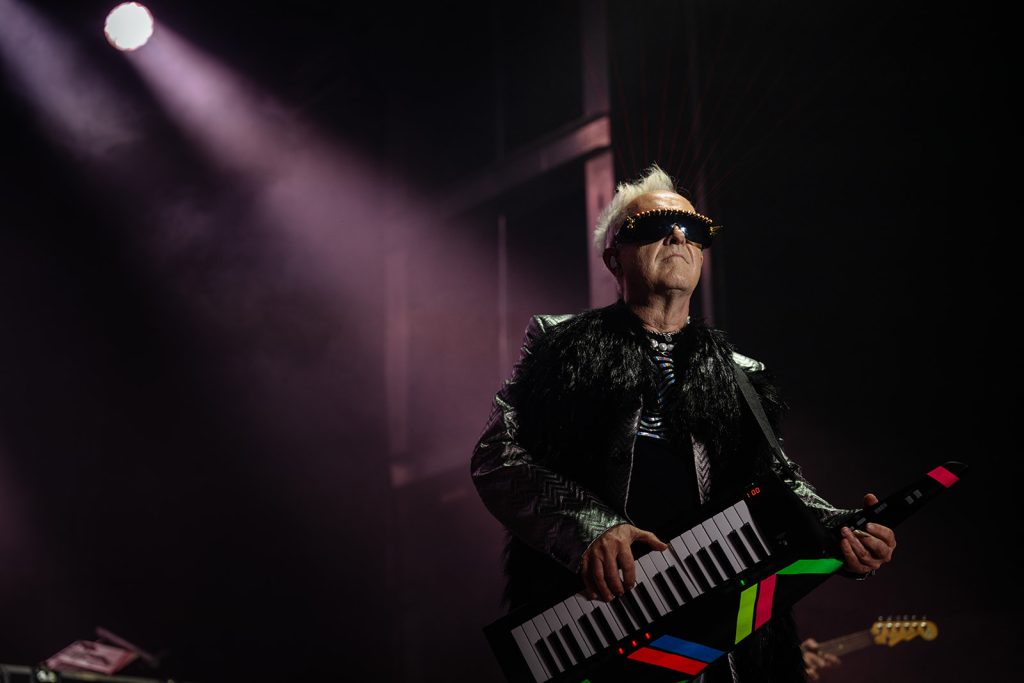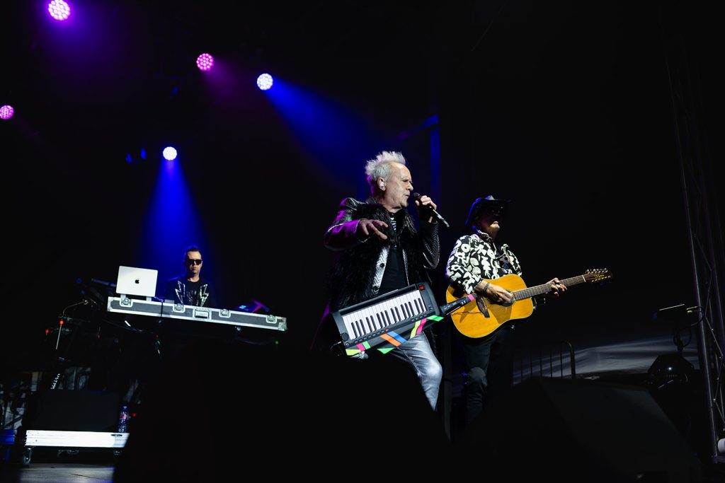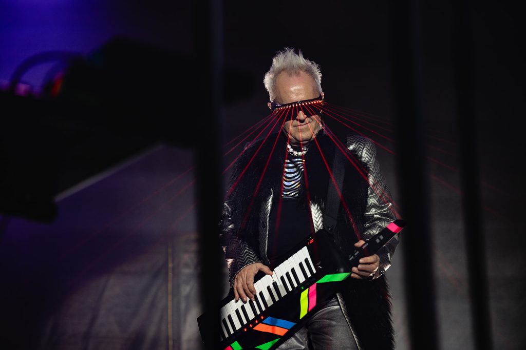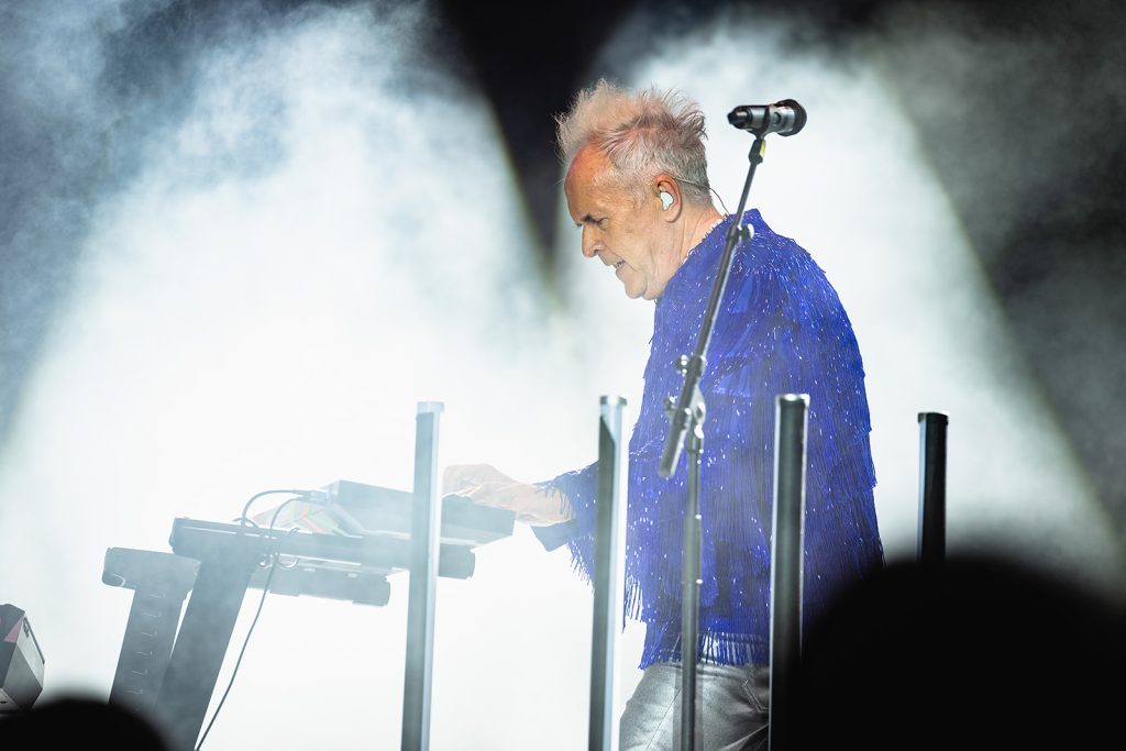 The sun had fully set by the time Howard Jones walked along the outfield and onto the stage. The rise in energy was instant. Howard never disappoints in the wardrobe department. For this show, he took the stage with dark sunglasses, shooting lasers out into the crowd. His signature keytar strapped to him while he donned an impressive black and silver zig-zag striped blazer. Opening with “Pearl in the Shell,” the audience was locked in on Howard and his full backup band.