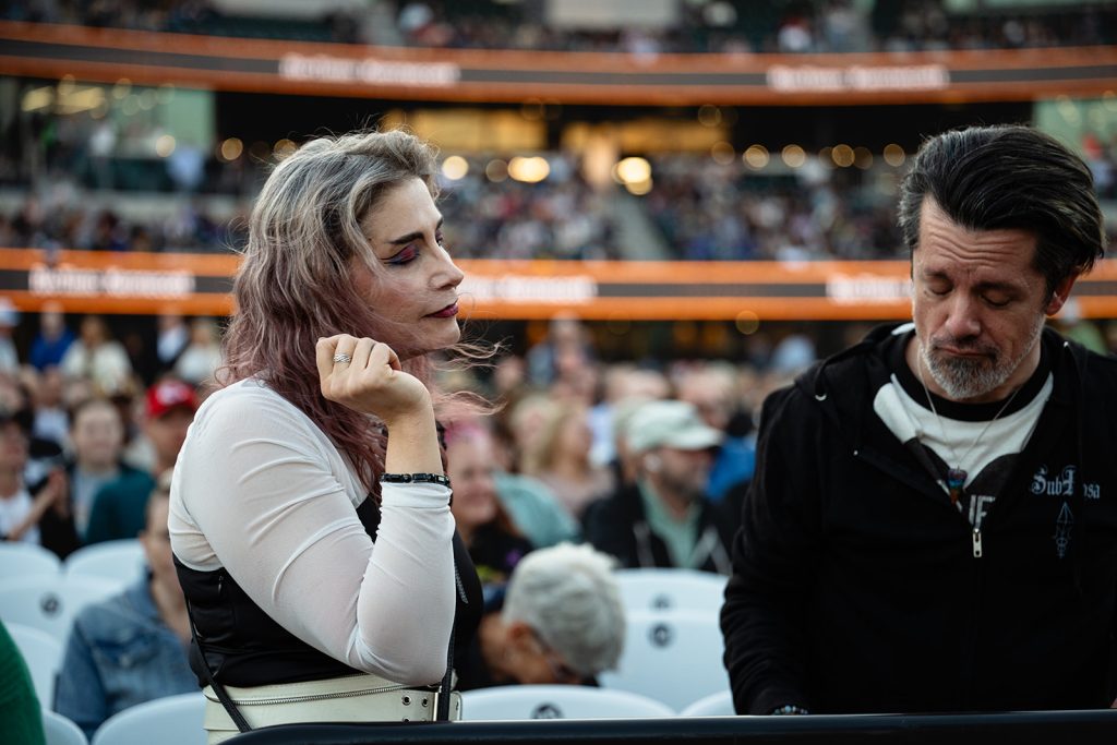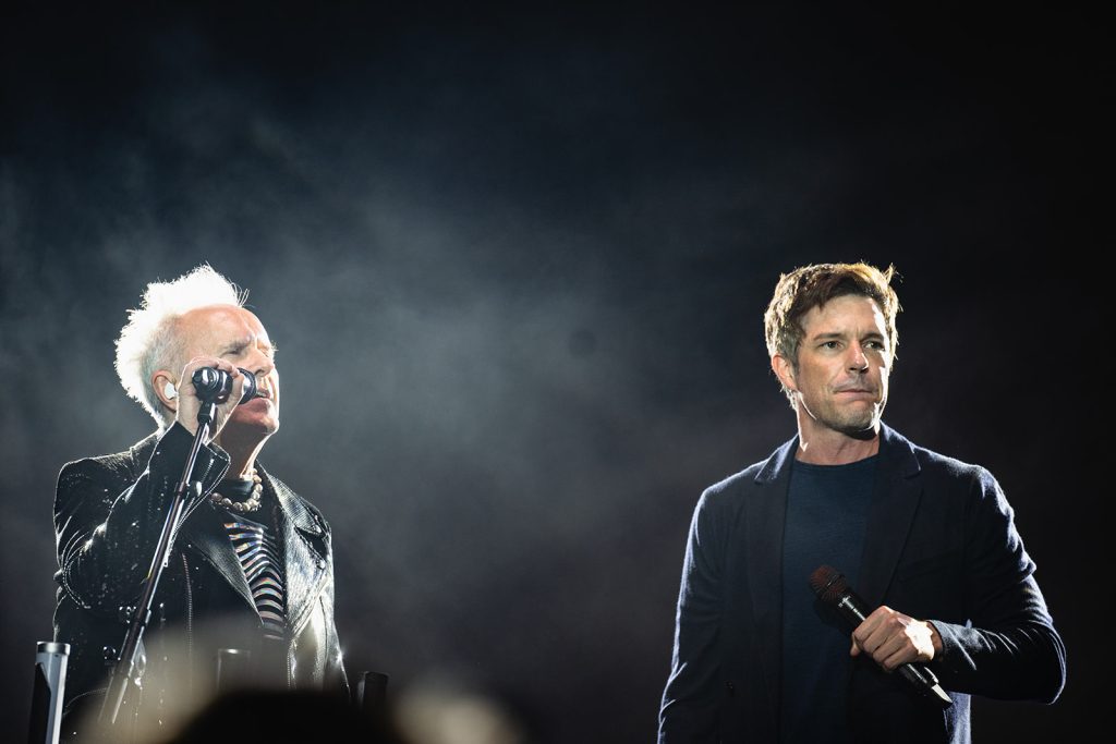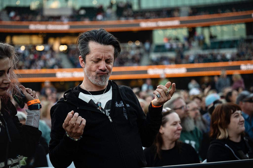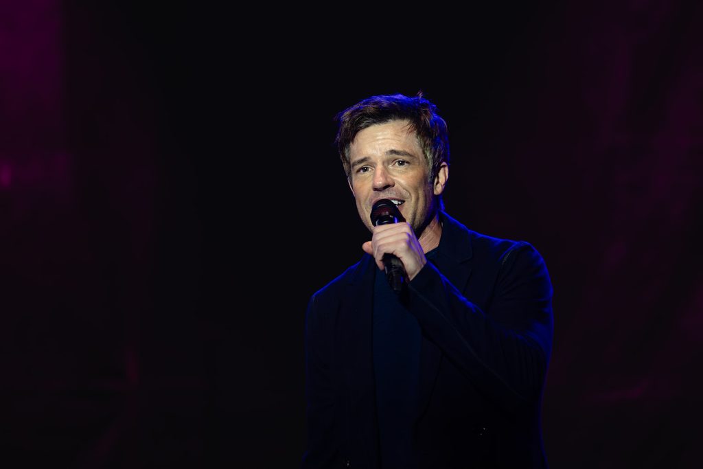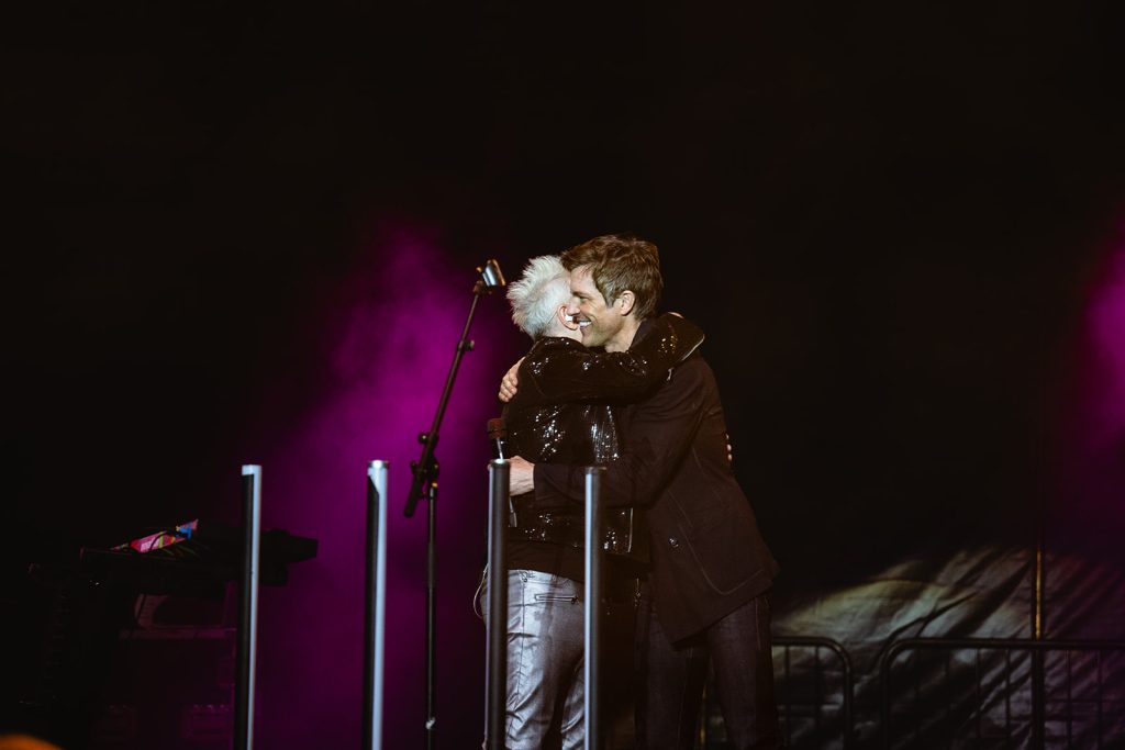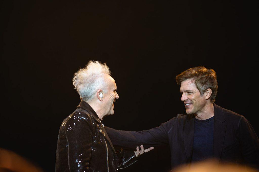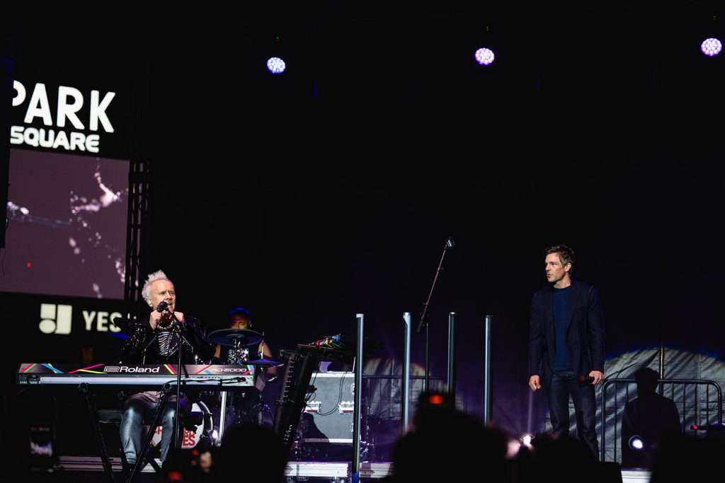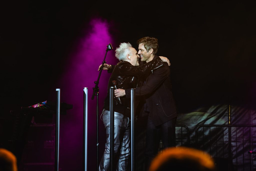 The highlight of the evening was the surprise appearance of Brandon Flowers, lead singer of the band The Killers. Howard Jones made an appearance at one of The Killers’ shows last summer. Flowers shared that he would be seeing Jones in Sandy for his 2024 show at the Sandy Amphitheater. Unfortunately, The Killers were doing a Las Vegas residency, so Brandon wasn’t able to make the appearance. Fortunately for us in attendance at The Ballpark at America First Square, Brandon Flowers made good and took the stage with Howard Jones to Thunderous applause. The Killers are one of my favorite bands, so this was an exciting moment.