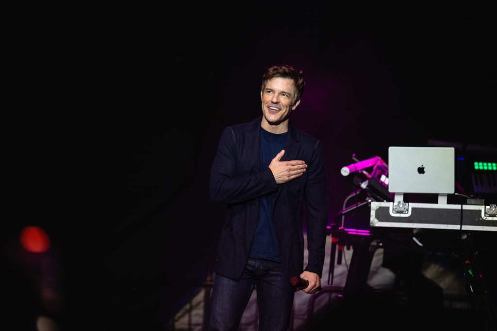 If there’s ever been an event with a juxtaposition between venue and artist, this was it! 80s Electronic music legend, Howard Jones, celebrated the 40th anniversary of his album Dream Into Action while playing the very first concert at The Ballpark at America First Square, the brand new stadium in South Jordan, and home to the Los Angeles Angels’ AAA affiliate, the Salt Lake Bees. The classic hits seemed that much fresher as the nostalgic songs played throughout the sparkling new venue.