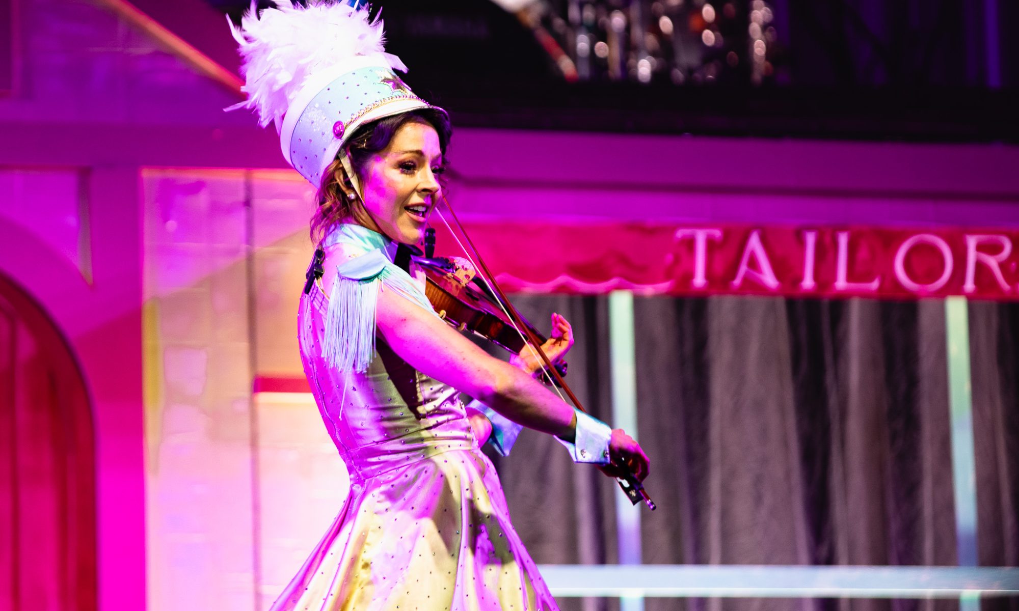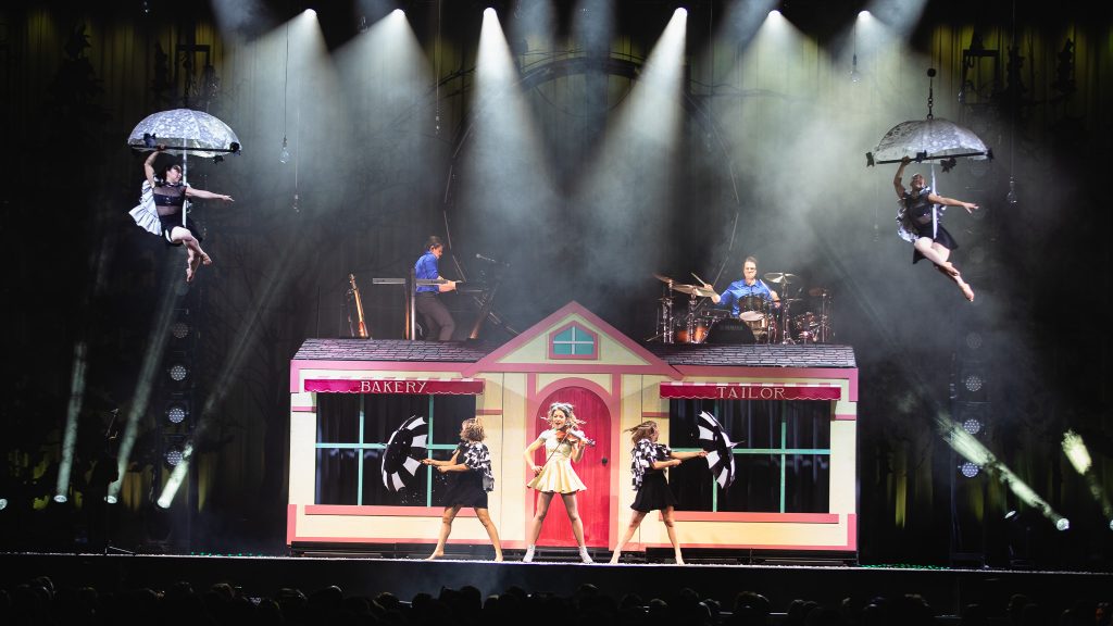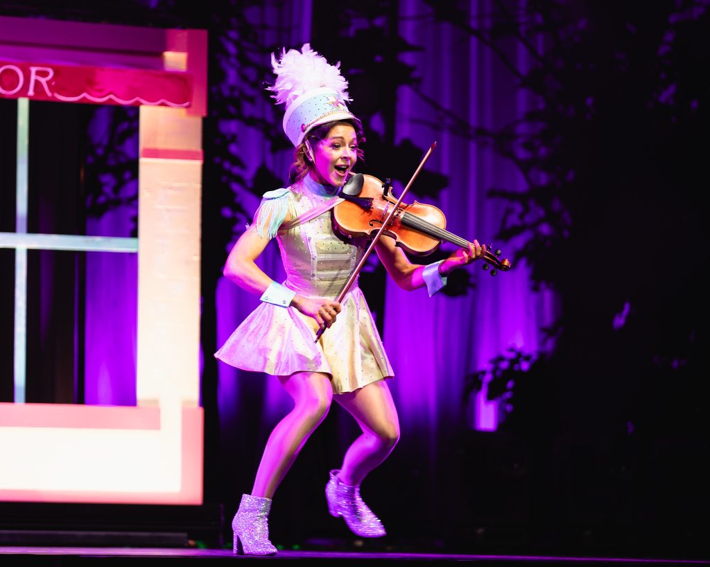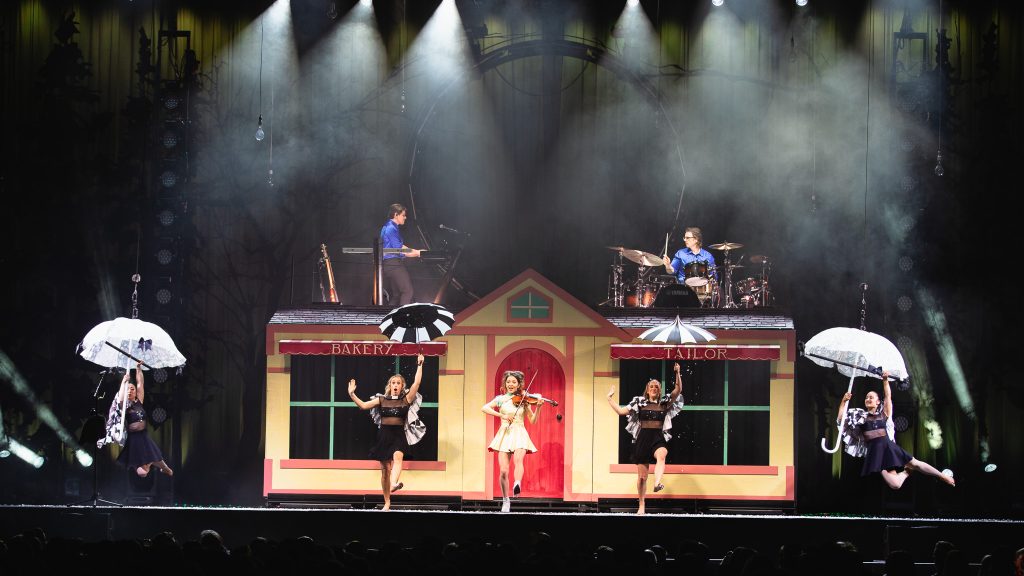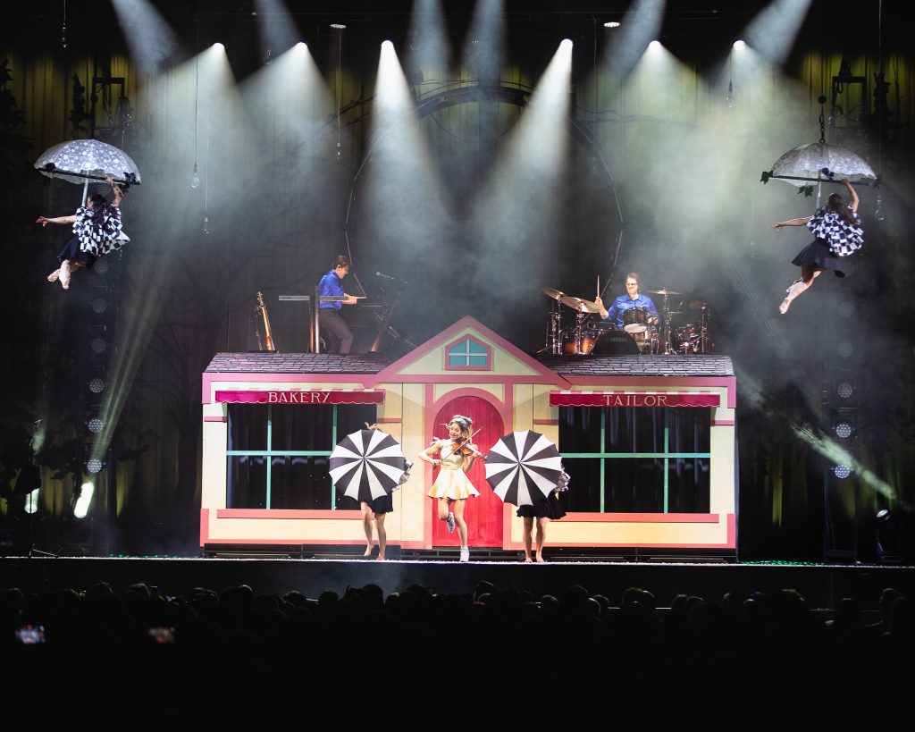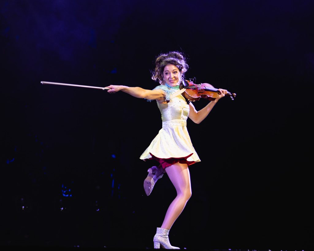 The show opens with an atmospheric swell of strings and ambient visuals that immediately establish the tone: whimsical yet cinematic. Stirling emerges not simply as a violinist, but as a character within the narrative of the evening—part snow queen, part mischievous sprite, part pop star. Dressed in intricately designed costumes that evoke frost, starlight, and fantasy, she commands the stage with a presence that is both polished and playful.