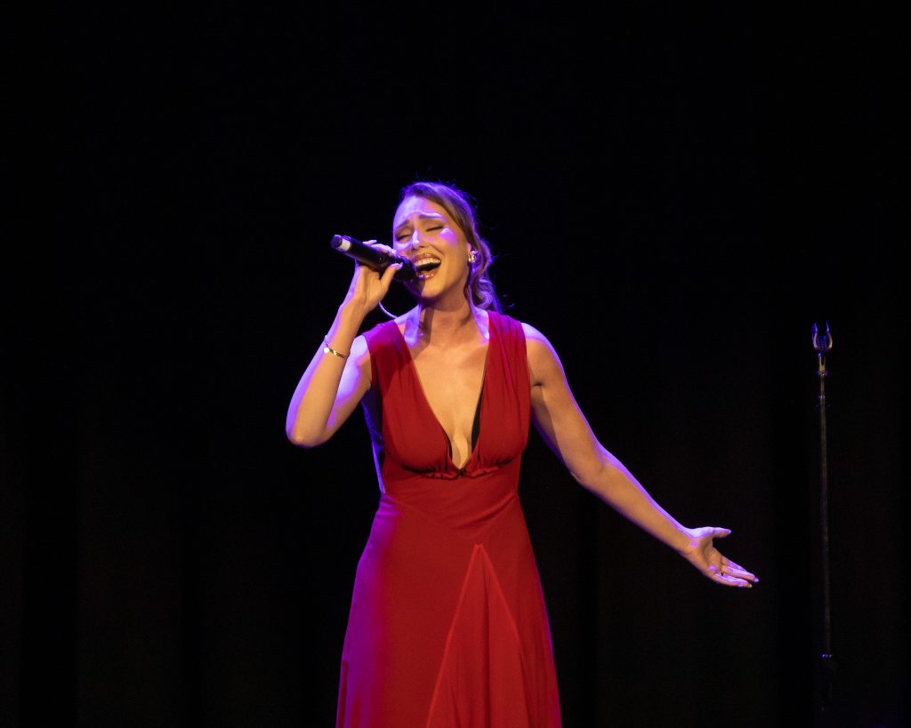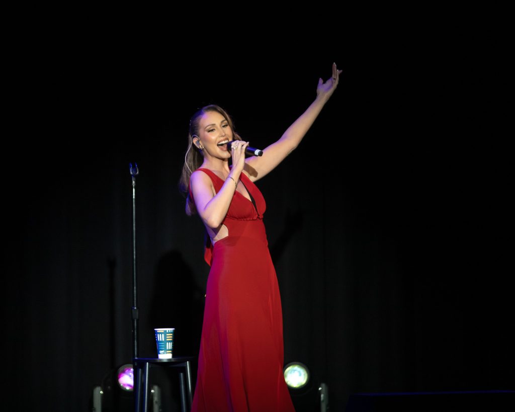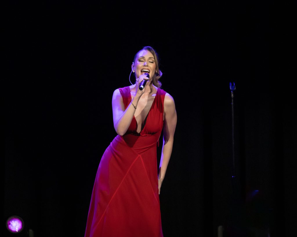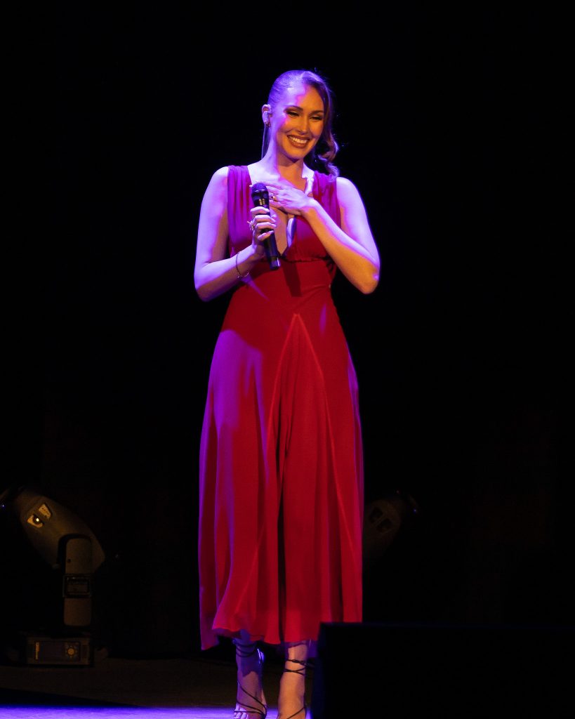“I’m so excited to be here. It’s such an honor to reopen such a beautiful space. Since I grew up in Murray, so many of my dreams have come true. And one of those dreams had to do with being involved with the movie The Greatest Showman. Do we have any Greatest Showman fans out there?” As you might expect, there was a large ovation from the audience. She then began her show with “A Million Dreams”.