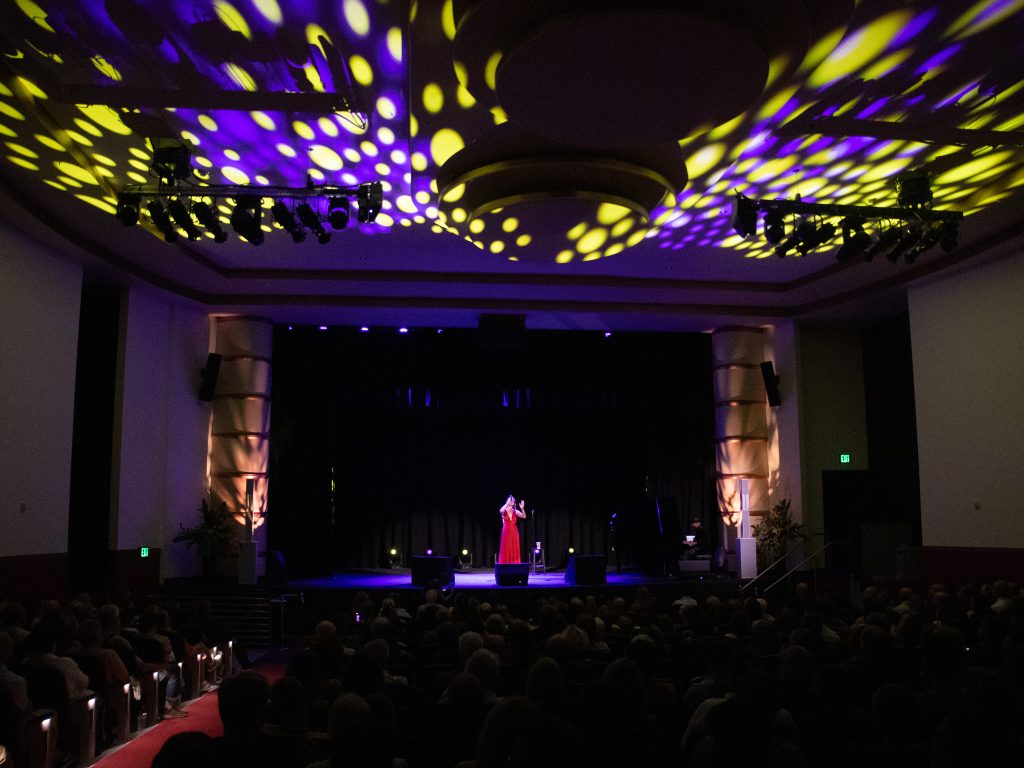 Next up was headliner, Loren Allred. She was the perfect choice to be the first headliner for the reopening of the Murray Theater. Allred grew up in Murray. She performed in the area for years before she went on to perform throughout the world. She shared with us that she remembered singing the National Anthem at Murray Park and competing in Murray Idol. Following up by saying, It’s the only singing competition I’ve ever won.” Referring to her appearances on TV competition shows, “The Voice” and Britain’s Got Talent, in which she received the Golden Buzzer from Simon Cowell.