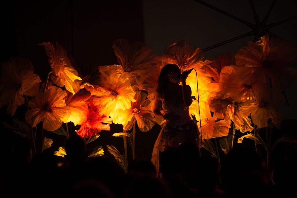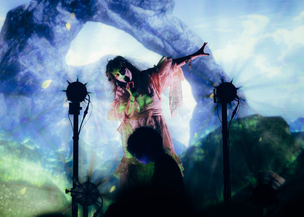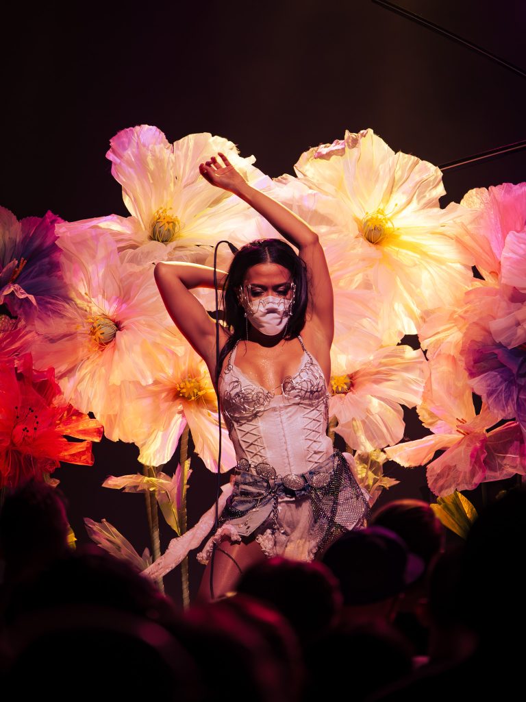 Opening for the show was YuniVERSE, an Indonesian/Australian electronic pop producer and singer whose music is a perfect blend of atmospheric soundscapes and dreamy synth beats under soft and floating vocals. Very similar to Purity Ring! Her backdrop on stage was a gorgeous wall of flowers that matched her lacey corset dress. I really enjoyed her performance!