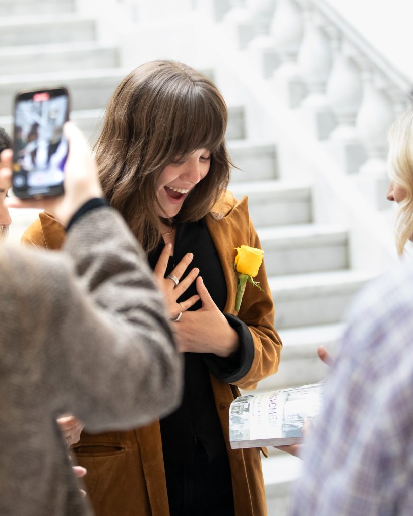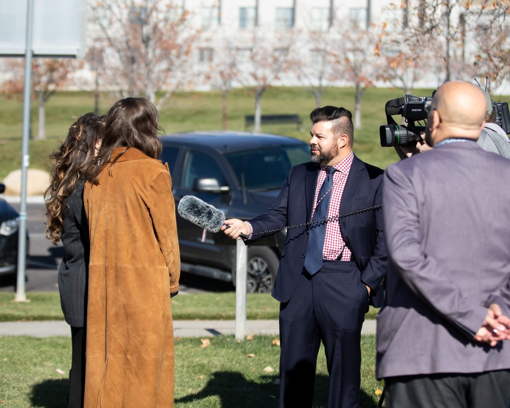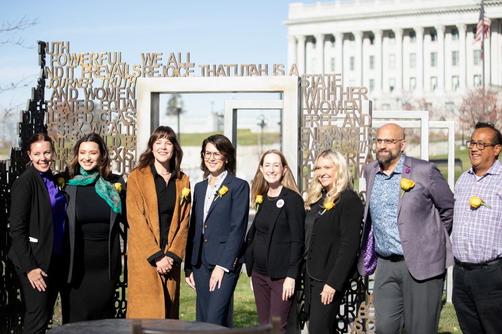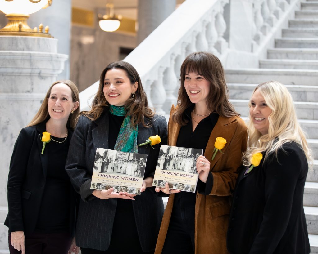 On November 13th, I had the opportunity to attend an event at the monument at the State Capitol. Utah Lieutenant Governor Deidre Henderson welcomed cast members Maya Keheher and Monica Tulia Ramirez to the Capitol grounds. Henderson shared with the cast members some women’s history in Utah. Including that Utah women were the first in the United States to vote under an equal suffrage law. She told them about Seraph Young, the first to cast her ballot in Salt Lake City on February 14, 1870.