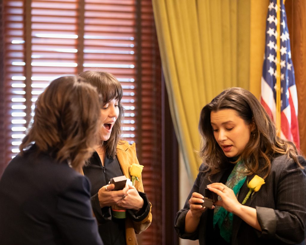 We were then given a tour of the State Capitol by the Lieutenant Governor. Not every day you get to experience that! We were shown inside the house chambers the painting of that historic date when Seraph Young cast her vote. We were also shown the monument of Young that is in the United States Capitol in Washington D.C. It was an incredible experience. Keheher and Young were gifted books and pins. They graciously took photos with the Lt. Governor and her staff. They were interviewed on TV and by the press. I enjoyed seeing their response to the entire event. They seemed to be genuinely moved by the stories they were hearing.