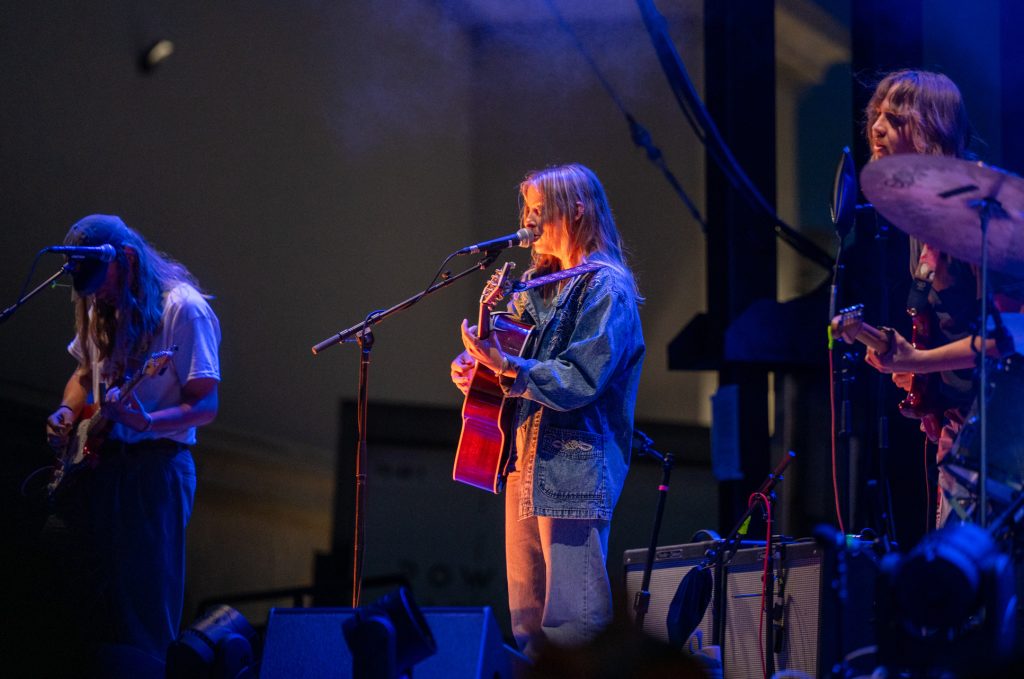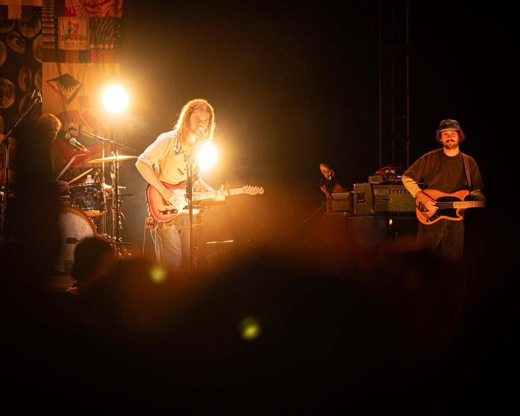 When the stage lights dimmed again, anticipation hit a new level. The Backseat Lovers took the stage to a roar, a roar that I have actually truly never heard at a Utah-based show before. As the roar quieted, they started with a soft, ambient intro—reverb, guitar textures, and slow rhythmic builds—before breaking into “Growing/Dying.” The reaction was immediate. Voices rose, hands went up, and for a few minutes, the open sky above The Saltair seemed to pulse with sound. The band’s chemistry was palpable, the kind that only comes from years of growing up together and playing to the same faces that first believed in them.