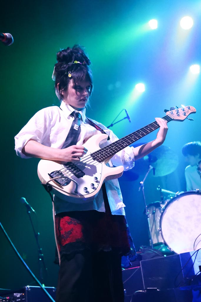 Annie DiRusso was a fan favorite. People in the front of the crowd were wearing “I love Annie DiRusso” handmade merch, complementing her guitars all night long, and there was even a group of guys in the middle of the crowd that DiRusso recognized from a previous Kilby Court show. People were screaming her song lyrics and dancing around throughout her set. The whole band ended the night off with a choreographed dance to the song “Coming Soon” with little kicks and all. At the end of the song, they all fell over in a cartoonish way, making the audience laugh and cheer loudly.