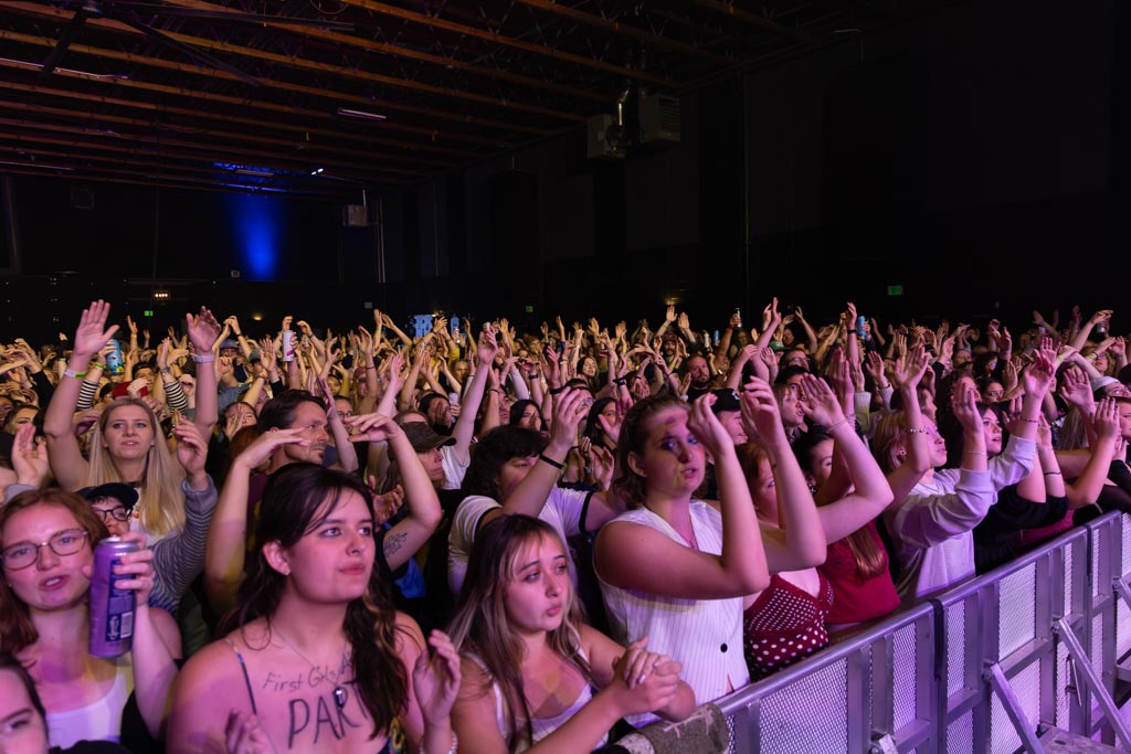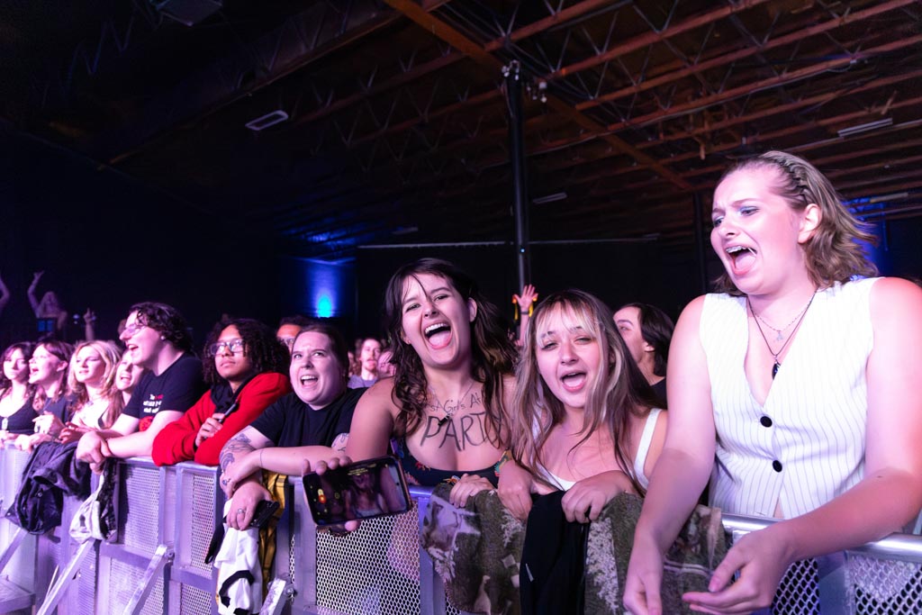 Interacting with the crowd is a huge part of the Beaches show, Jordan Miller asked, “Alright Salt Lake City, we’ve got a question for you. We wanna know if you’ve ever said too much? Is there any brave soul in the audience who would like to come up on stage and share a story about oversharing? Oh my god, you seem super enthusiastic. And while you’re coming up here, I’ll share an embarrassing story. The last time I was in Salt Lake City…” before sharing a story about how she went to use the bathroom outside of a venue and ended up deadbolted inside of a porta-potty that almost got picked up and shipped away from the venue.