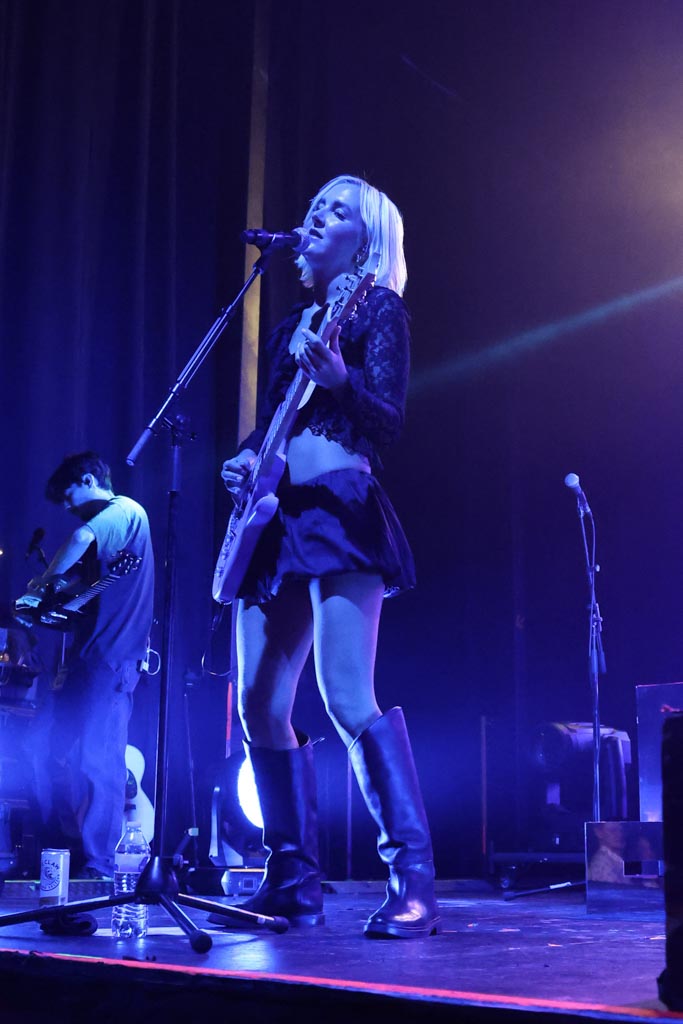 Obviously not every member of the band is named Annie DiRusso, but it was a cute way to highlight each of the members of the band in the beginning, and the real DiRusso later said at the end of the night, “I’ve got one more song for ya’ll and I have a great band with me and they are not all named Annie DiRusso. To my left on the guitar, we got James Eichman; to my right on the bass, we got Book, not Brooke, and behind us on drums, we got Levi Bennett. I’m having the best time traveling with y’all, by the way, plus Sofie at merch and Mike, who’s TMing.”.
