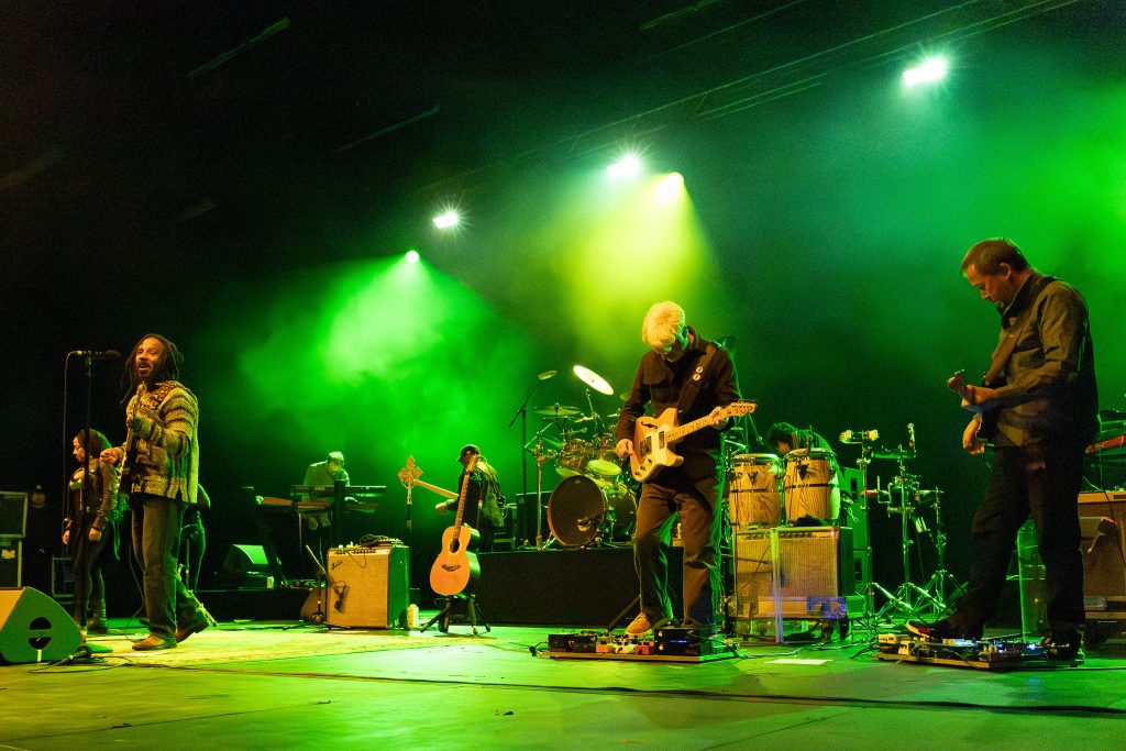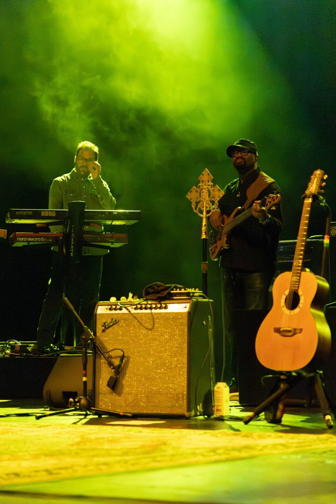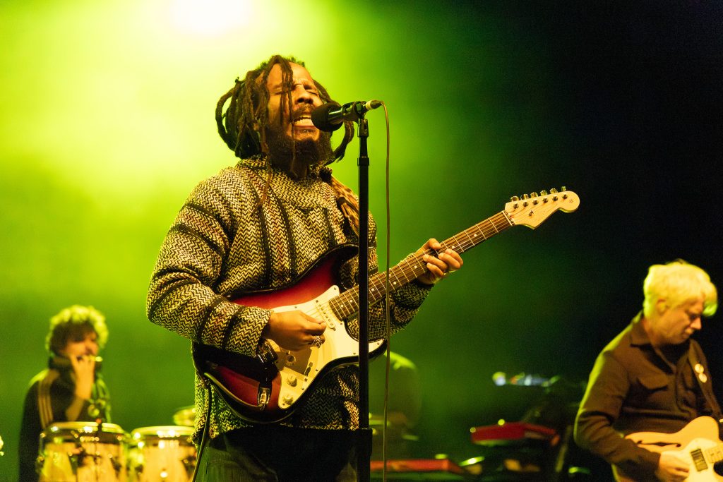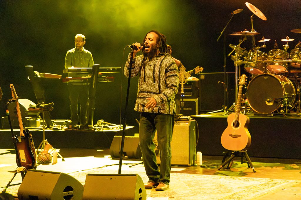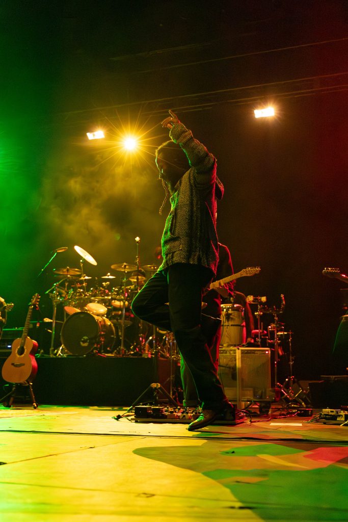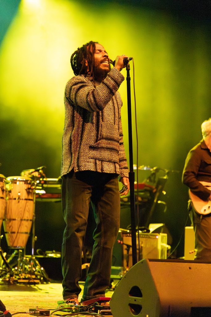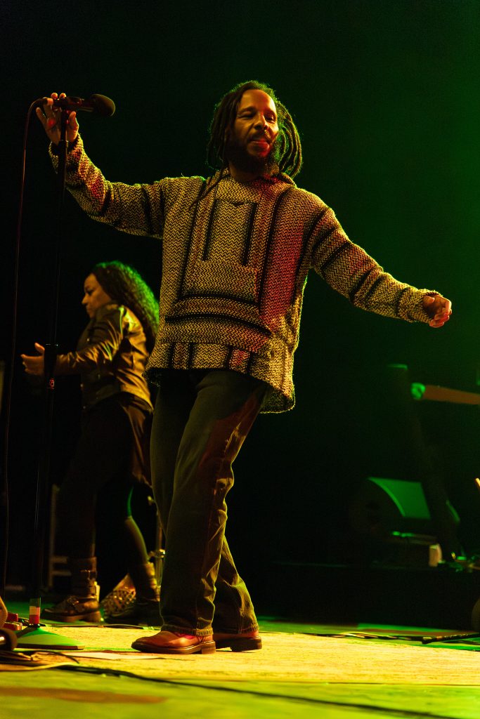 The lighting throughout Ziggy’s set reflected the colors of the Rastafarian color scheme: Red, Gold, and Green. The minimal set design of a bare stage with just a rug on the ground made the performance feel very grounded and down to earth. The crowd was filled with Rastafari hats, dreadlocks, and various outfits with Ziggy Marley’s face on them, and a few commemorating Bob Marley.